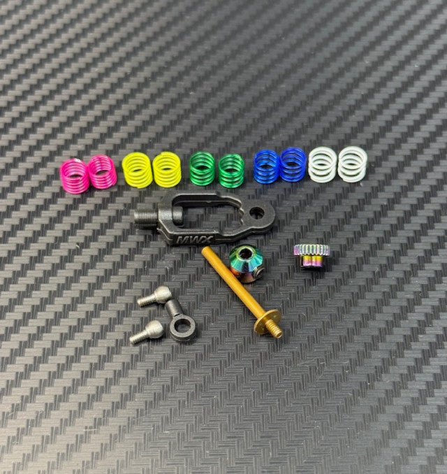 Includes the full linear spring set (used on the front as well). Note: Green and Pink are too soft for center shock use but great for front-end tuning.